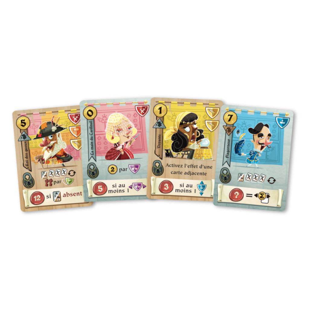 Sans complexifier un jeu qui brille par sa fluidité, les Cadenas apportent leur lot de nouvelles réflexions et opportunités de combos. Certains de ces effets vous permettront d’agir encore davantage sur les rivières de cartes, au-delà de l’action du Messager au début de votre tour. D’autres viendront même déclencher à nouveau l’effet d’une cartes adjacente, au moment le plus opportun !