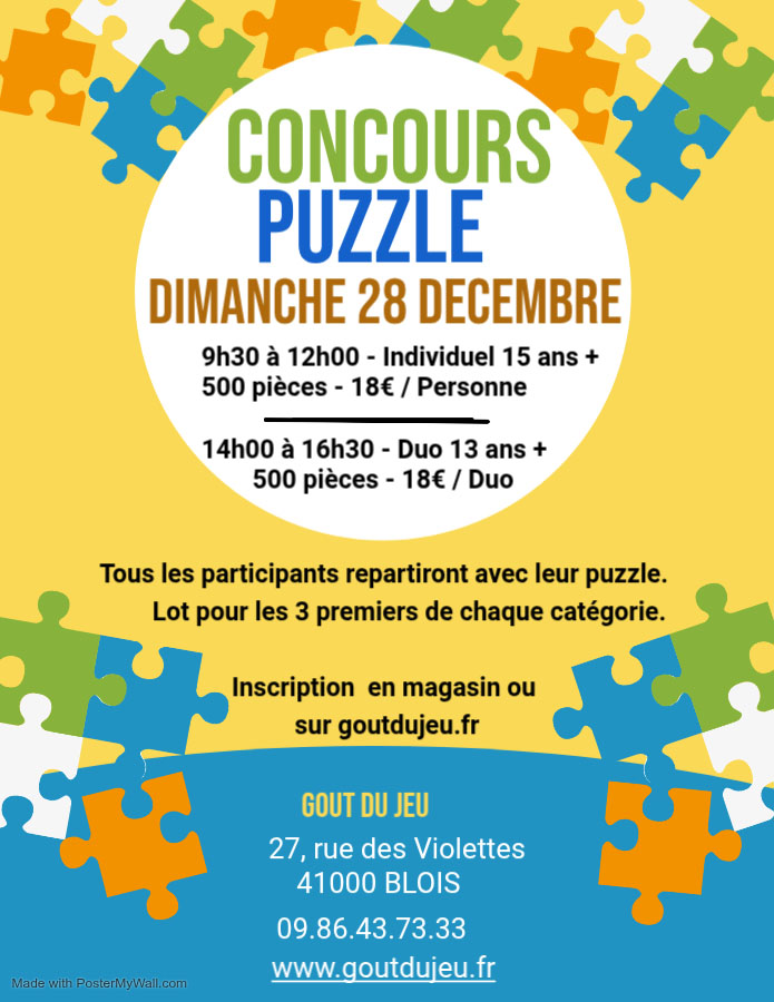 500 pièces : 9h30 à 12h00 – - Duo – 13 ans et +