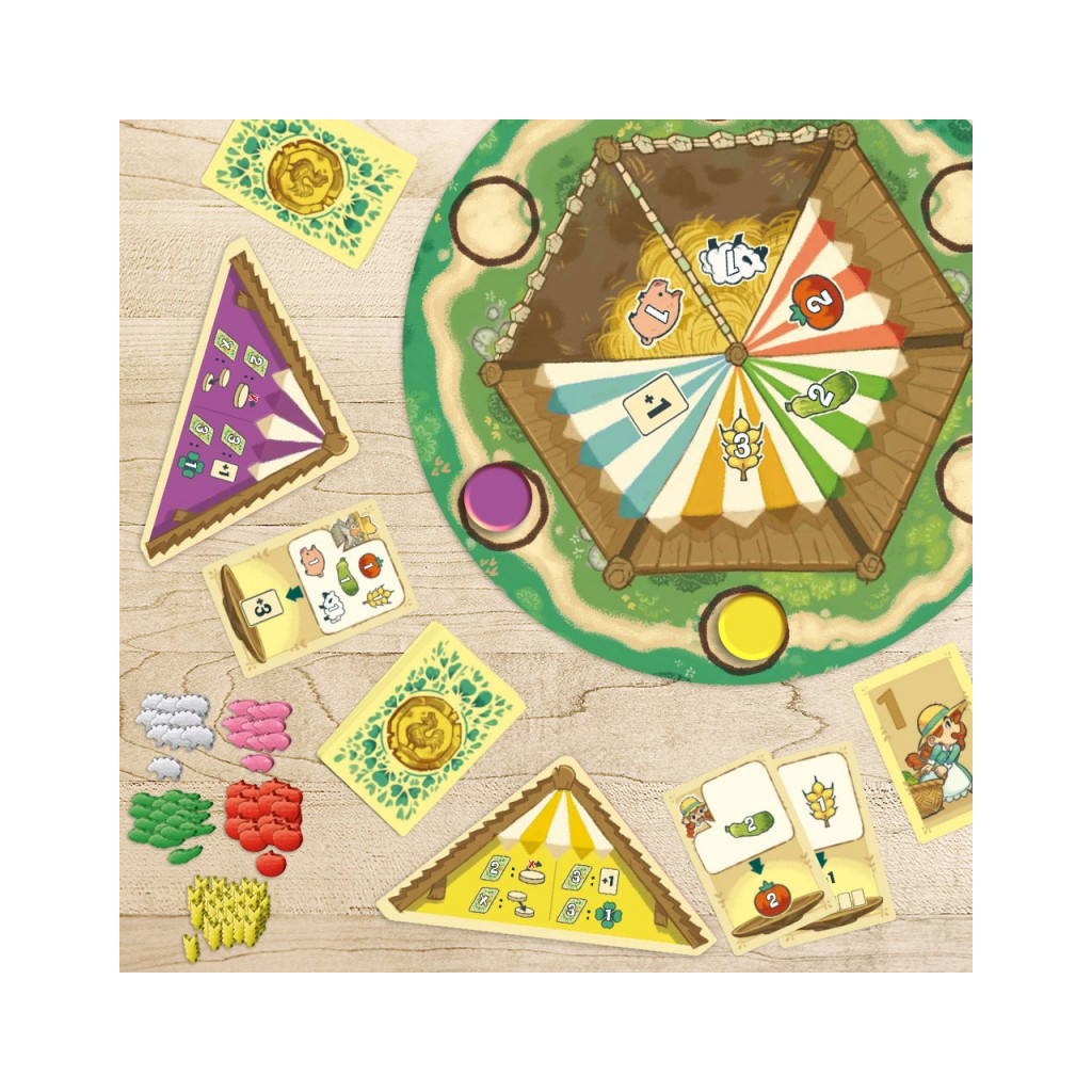 Créez vos moteurs temporaires de collecte de ressources et de pioche de cartes et coiffez les autres fermiers sur le poteau en finissant vos commandes avant eux !
