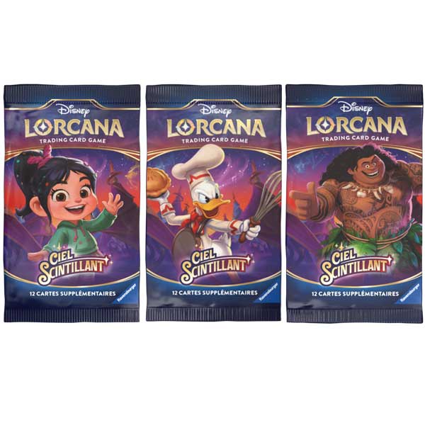 Les boosters contiennent douze cartes aléatoires de Lorcana et sont utilisés pour construire, personnaliser ou améliorer son deck avec des capacités et des personnages qui ne se trouvent pas dans les decks de démarrage.