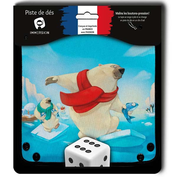 Les boutons pression transforment la piste de dés en quelques secondes et facilitent le rangement à plat ou roulé.